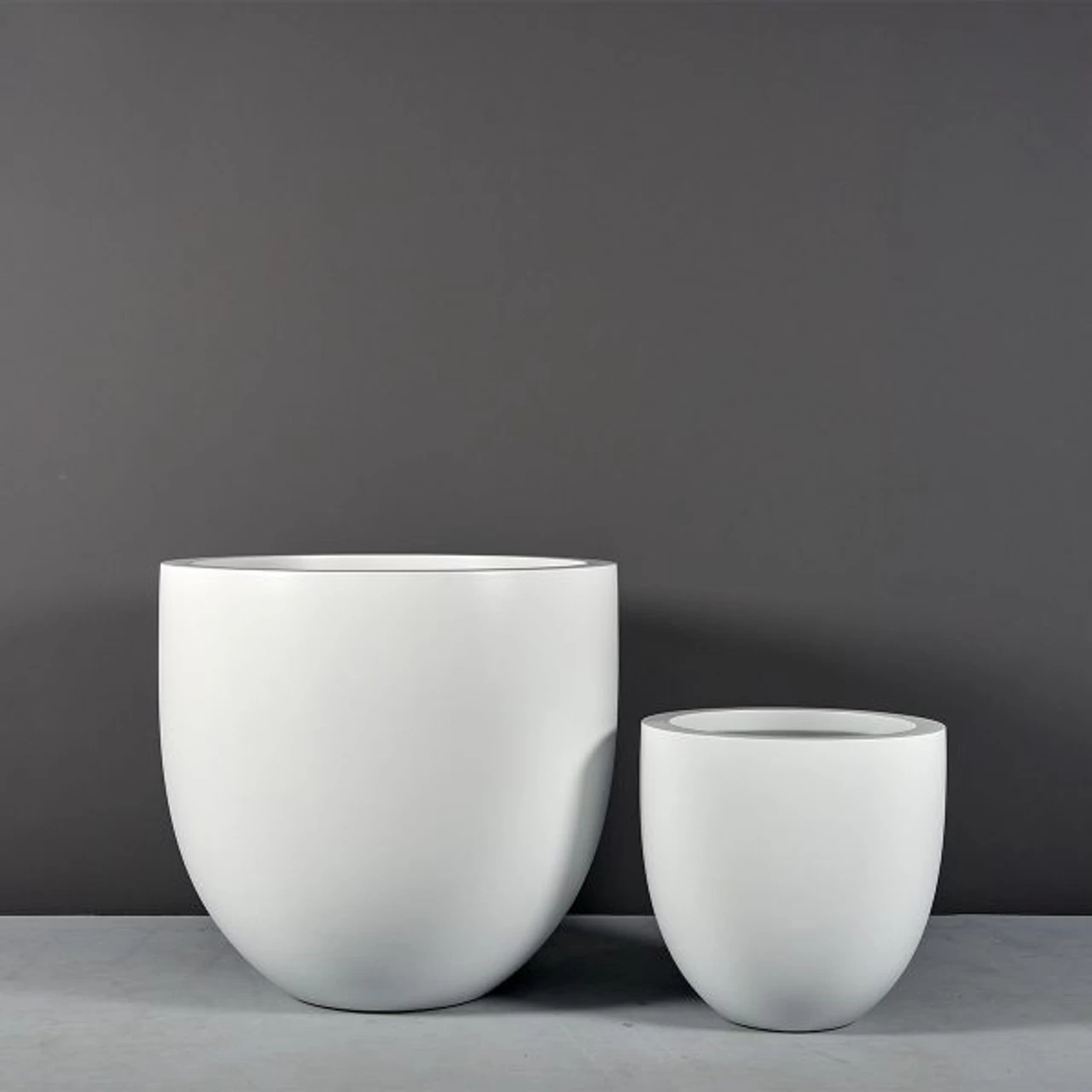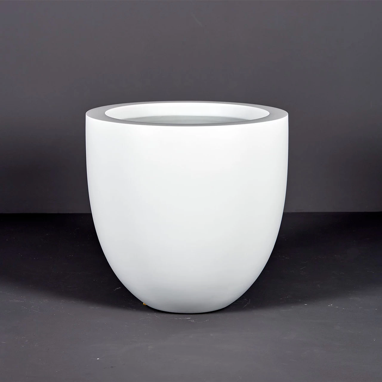 The Alzira Bowl Planters are made from weather-resistant fiberglass. This material will not warp or rot and does not become brittle or fade when exposed to direct sunlight. These planters are lightweight, so they can be moved as needed or put into storage. Drainage holes are optional and can be added if necessary during ordering.