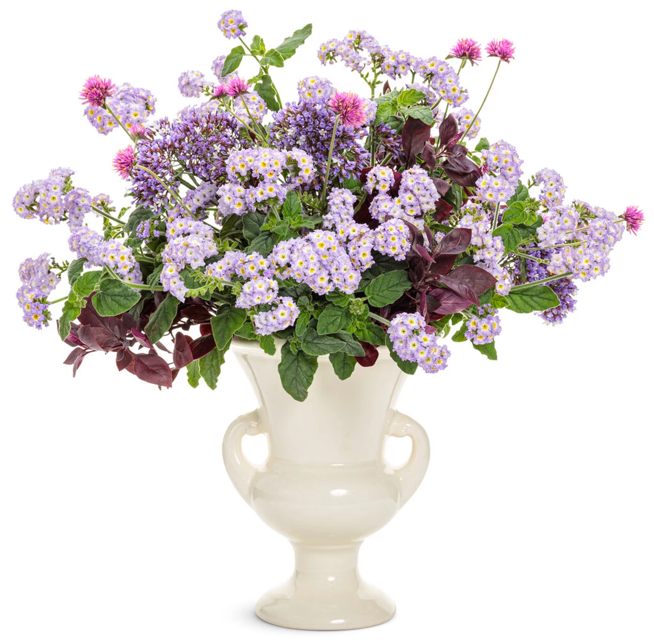 While the Augusta™ Lavender Heliotrope looks amazing when grown in combination with other plants, this beauty looks great on its own, too. This plant, also known as Heliotropium, blooms in the spring and summer and boasts an abundance of tiny lavender-colored flowers with yellow eyes. Flowers grow in clusters and balance out the lush green foliage. The Heliotrope grows as a perennial in USDA zones 9, 10, and 11.