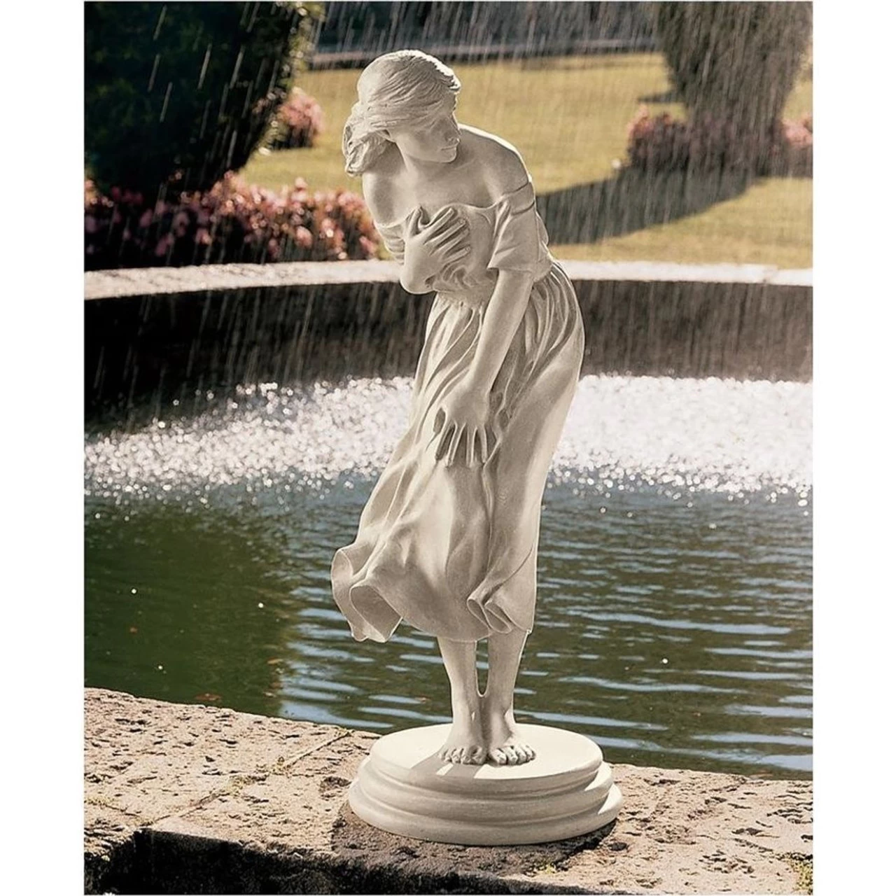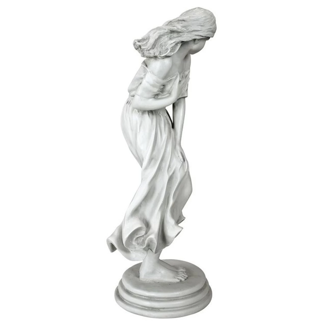 A bare shouldered maiden holds her gown against a gust of wind in this sculpture by Frenchman Pilet, winner of the prestigious Grand Prix de Rome and Medal of Honor. “Windblown” is exquisitely detailed from the drape of fabric to the arch of the woman’s delicate feet. Amidst a pond or in an entryway, our nearly three-foot-tall casting lends elegance in designer resin exclusively for Toscano. See alternate views for details.