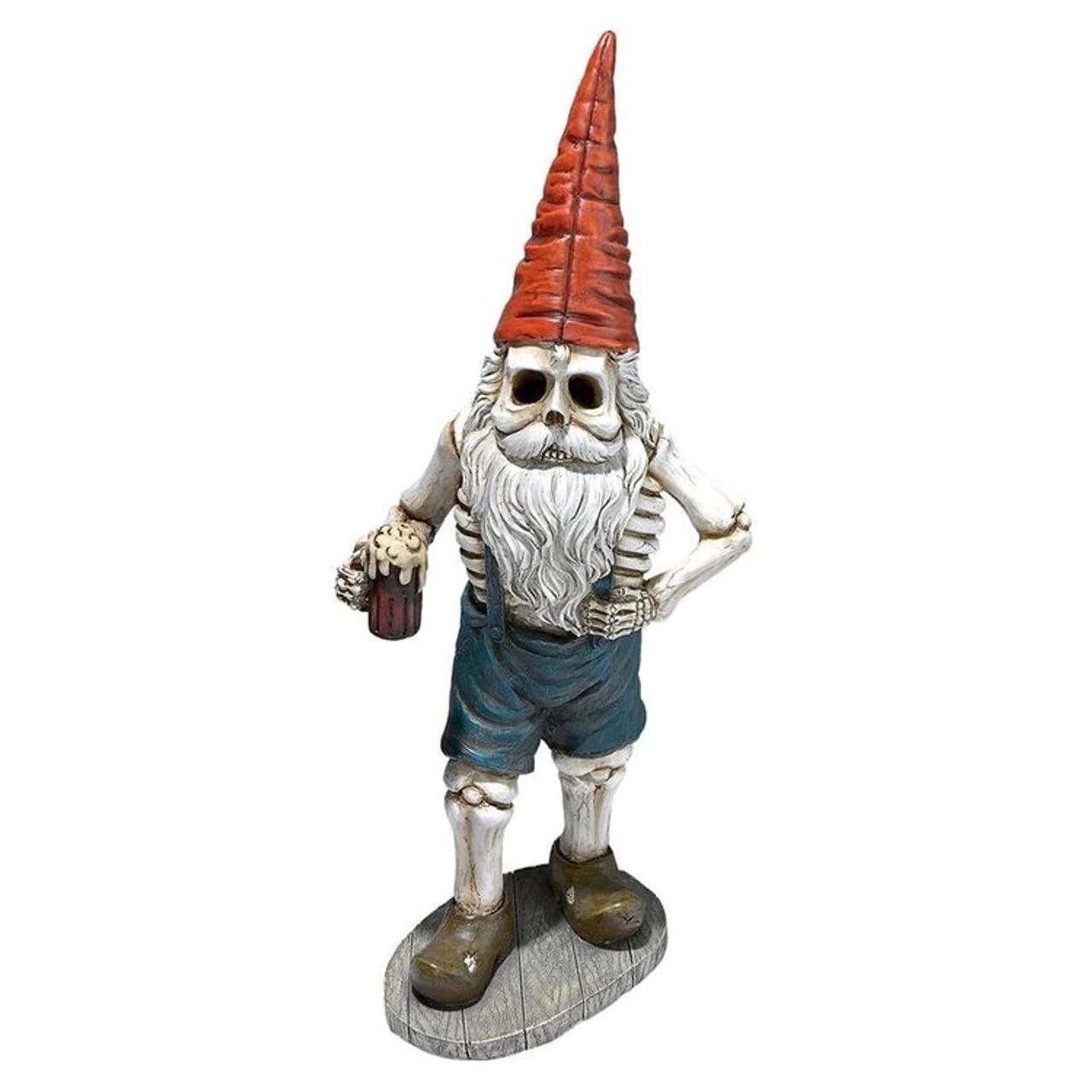 This set of beer-swigging Bavarian gnomes had so much fun at the brew tents for the 1810 wedding of King Ludwig that they just never left! Our skeleton crew gnome collectibles are ready to raise a frothy mug of Bavarian beer to the year-round Oktoberfest in your very own backyard. Cast in quality designer resin complete with Munich style dirndl dress, burly beard and lederhosen, our Germanic dwarves are individually hand-painted with mythical elf magic as fantasy fun Oktoberfest collectibles and imaginative Halloween troll gifts.