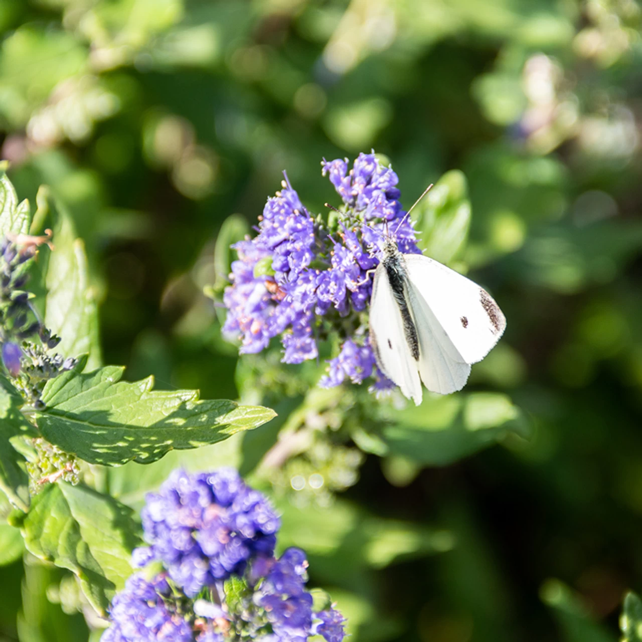 A tough, low growing and heavy bloomer, Beekeeper ™ Bluebeard will attract any and all pollinators in your yard. The brilliant blue flowers bloom for a very long season, all of the way up to the first frosts in fall. The densely branched plants can be used at the front of a planting bed for a lovely border along a walkway or planted en masse as a slightly taller growing ground cover. Either way the brilliant blue of the flowers would make a good contrast to orange colored perennials or as a soothing companion to white and other shades of blue.