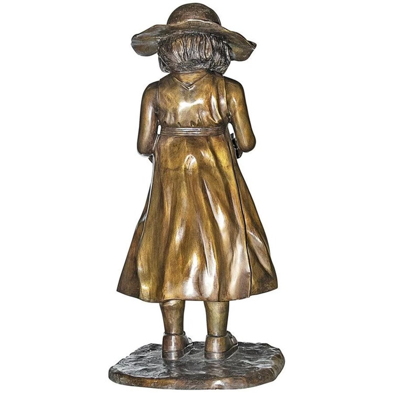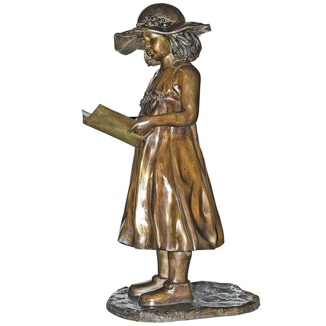 All dressed up and lost in the imagery of her story, Beulah is strolling and reading in the garden on a sunny day. A hand applied classic multidimensional color washed sepia bronze patina will bring out all the amazing details of Beulah’s intent face under her smart sunhat and her breezy sundress accented with bunches of tiny flowers. Beautiful Beulah is sculpted to be view 360 degrees as the view of her sweet enraptured face and her childhood tale of fantasy will evoke memories of childlike wonder. Cast one piece at a time in the traditional lost wax method, which highlights the details of the sculpture and guarantees lasting beauty. Sure to be a garden focal point, this DT heirloom quality bronze statue conveys that you take the exterior of your home as seriously as the interior.