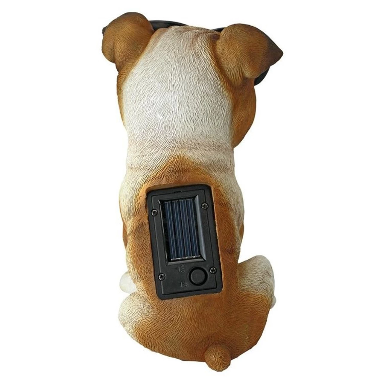 This cute watch dog might need glasses but his night vision is the best! All he needs to be happy is a place in the sun, and he will keep lookout for you day and night! Cast in quality designer resin exclusively for DT, our adorable Bright Eyes Solar Bulldog is artistically hand-painted with big black glasses and will capture your heart when he’s spied along a garden path, at the edge of a flowerbed, or by the front door. A wireless, integrated solar panel charges automatically, so you simply flip the on/off switch and enjoy. Another fun-loving garden gift from DT!