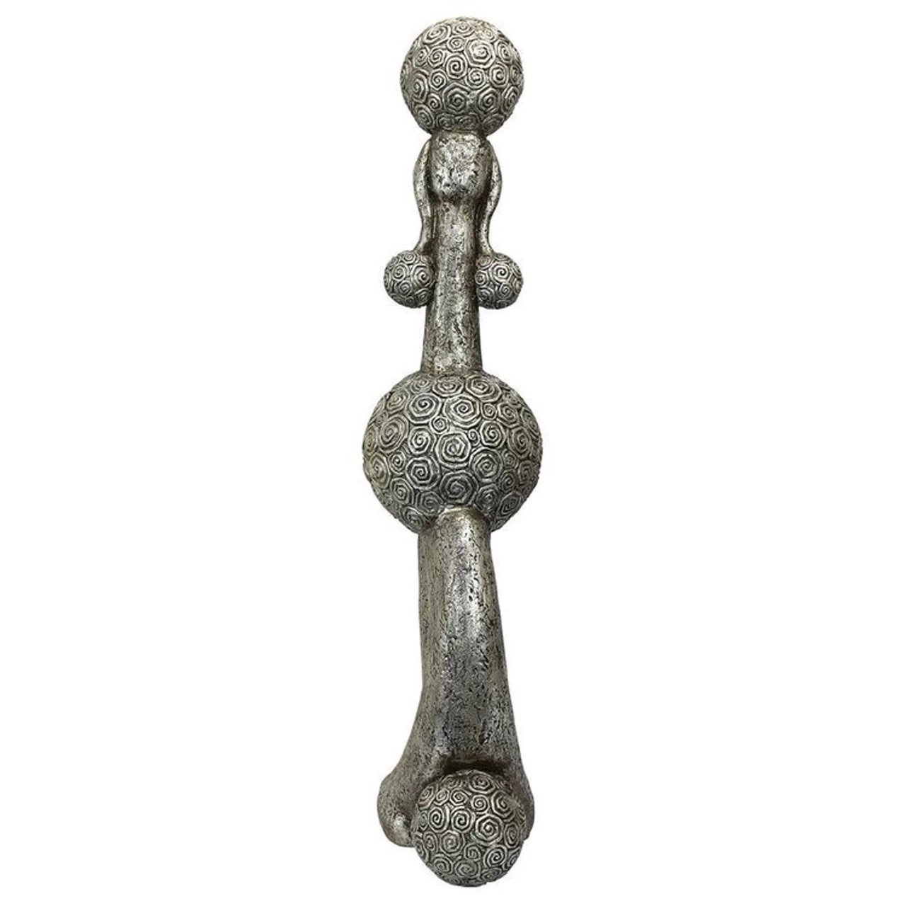 “Oo-la-la! What a dog!” Our Basil Street Gallery canine style maven sports a Parisian continental clip and prances through your home with all the panache of a French runway model. Though our demure doggie will never actually traipse the catwalk, she still poses as if she’s perpetually sitting next to her master at an outdoor bistro cafe. Our artist has cast this collectible in quality designer resin with an aged antique pewter finish that’s very vogue. After all, for an almost yard-tall poodle, it’s always Fashion Week somewhere!