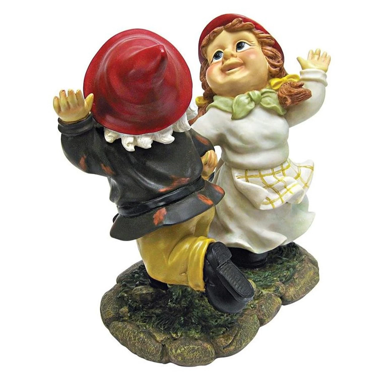 When you could use a little gnome magic in a garden flowerbed or vegetable plot, our DT Garden Gnome sculpture is at the ready! Sporting pointy red elf hats and full gnome attire, these exclusive garden Gnomes are doing a traditional Gnome dance, extending a warm welcome to all visitors to your home or garden. Imaginatively sculpted, our quality designer resin garden gnome figurine is lovingly made of quality designer resin and then hand-painted one piece at a time exclusively by Toscano skilled artisans.