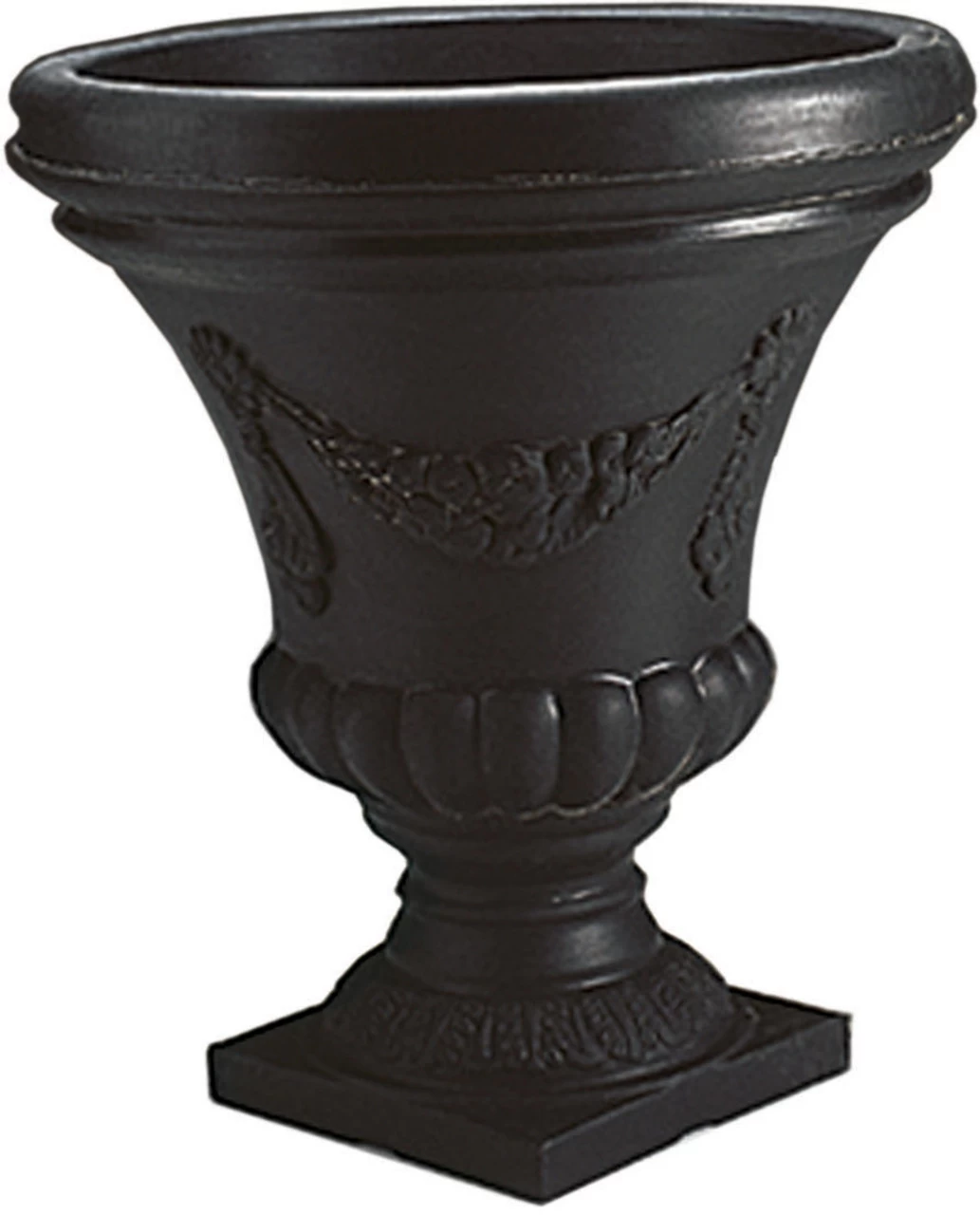 The Festonada Urn Planter by Crescent Garden matches the Spanish-style design of the Festonada planter. Mix and match these for a unique style garden great for flowering perennials and annuals. The urn planter is made out of a poly resin material that is both fade and crack resistant and great for both indoor and outdoor use. The detailed design of these planters will never fade and will stand out for years to come. The thick base provides terrific stability.