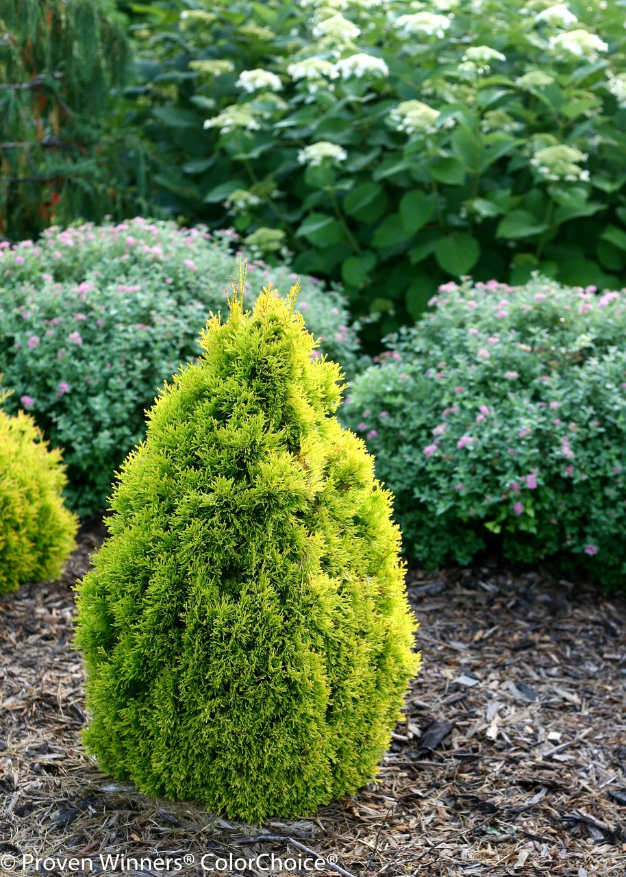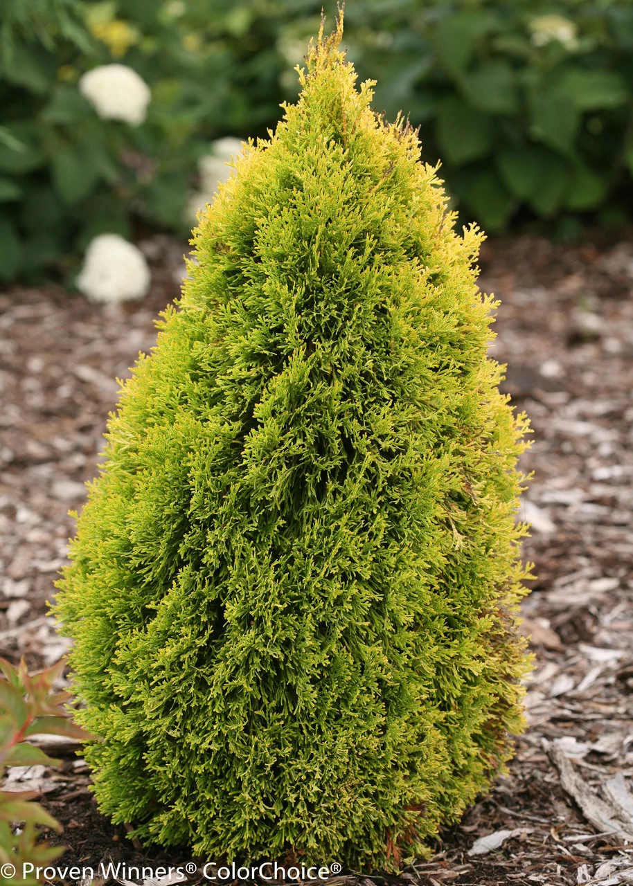 Filips Magic Moment Arborvitae by Proven Winners ColorChoice is a very unique arborvitae perfect for a homeowner looking for unique to grow in their yard. This shrub has new growth that is bright yellow, which lasts all year long due to being an evergreen. We particularly like planting these at each side of an entryway or the driveway. Even can even be planted in large garden planters for something unique that lasts all year. It grows into a little dense cone shaped shrub that requires no pruning. This Proven Winners ColorChoice shrub is a true standout plant any gardener would love to have in their collection.