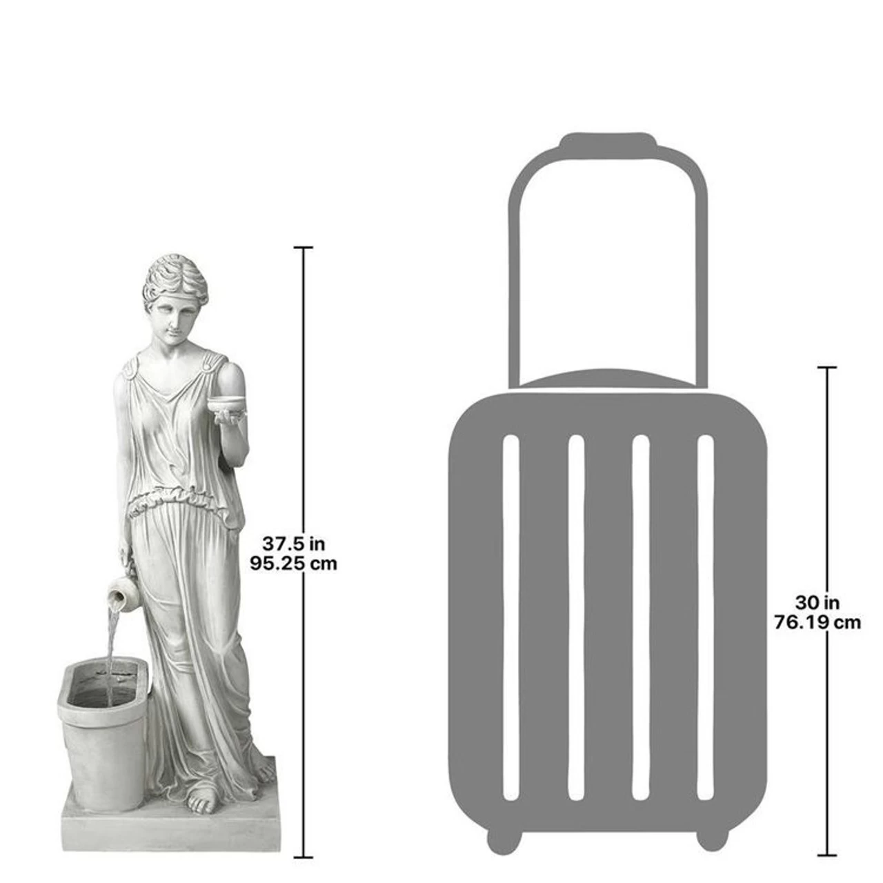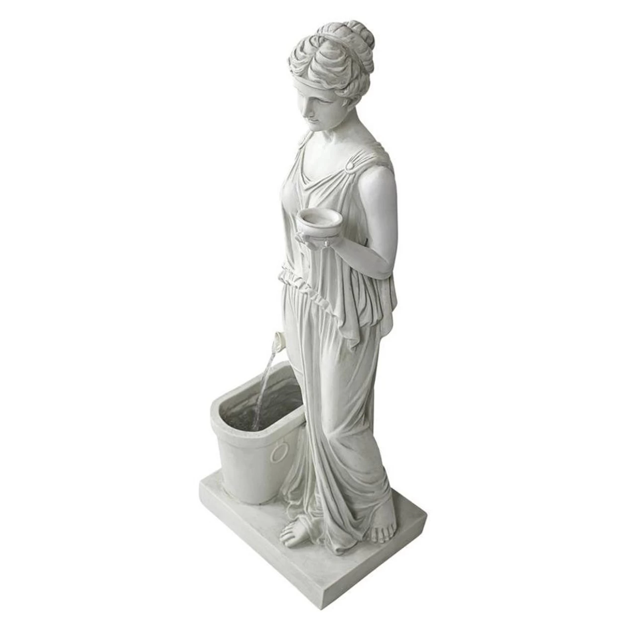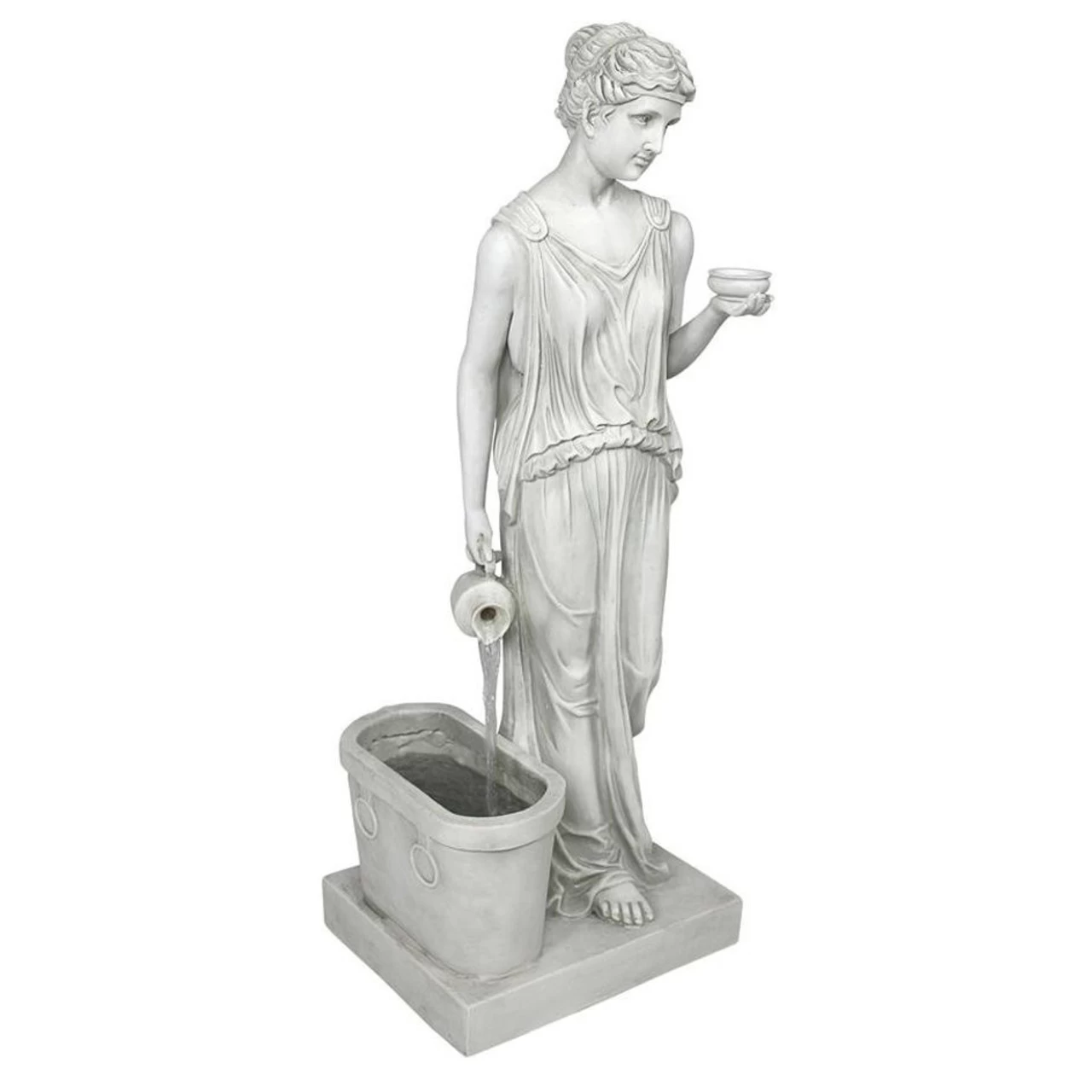 The ancient Greeks claimed therapeutic benefits from healing waters found in sacred spots – and we’re sure the beautiful water music had benefits all its own! Personifying the eternal beauty of youth, the goddess Hebe, cup bearer to the Olympic gods, becomes a yard-tall fountain as her sparkling waters cascade from cruet urn to basin. Our DT-exclusive is cast in quality designer resin and hand-finished to replicate fine stonework, this classical focal point is an investment in garden art that features a durable, weather resistant, integrated, UL-listed, indoor/outdoor pump. Another quality garden fountain from Toscano!