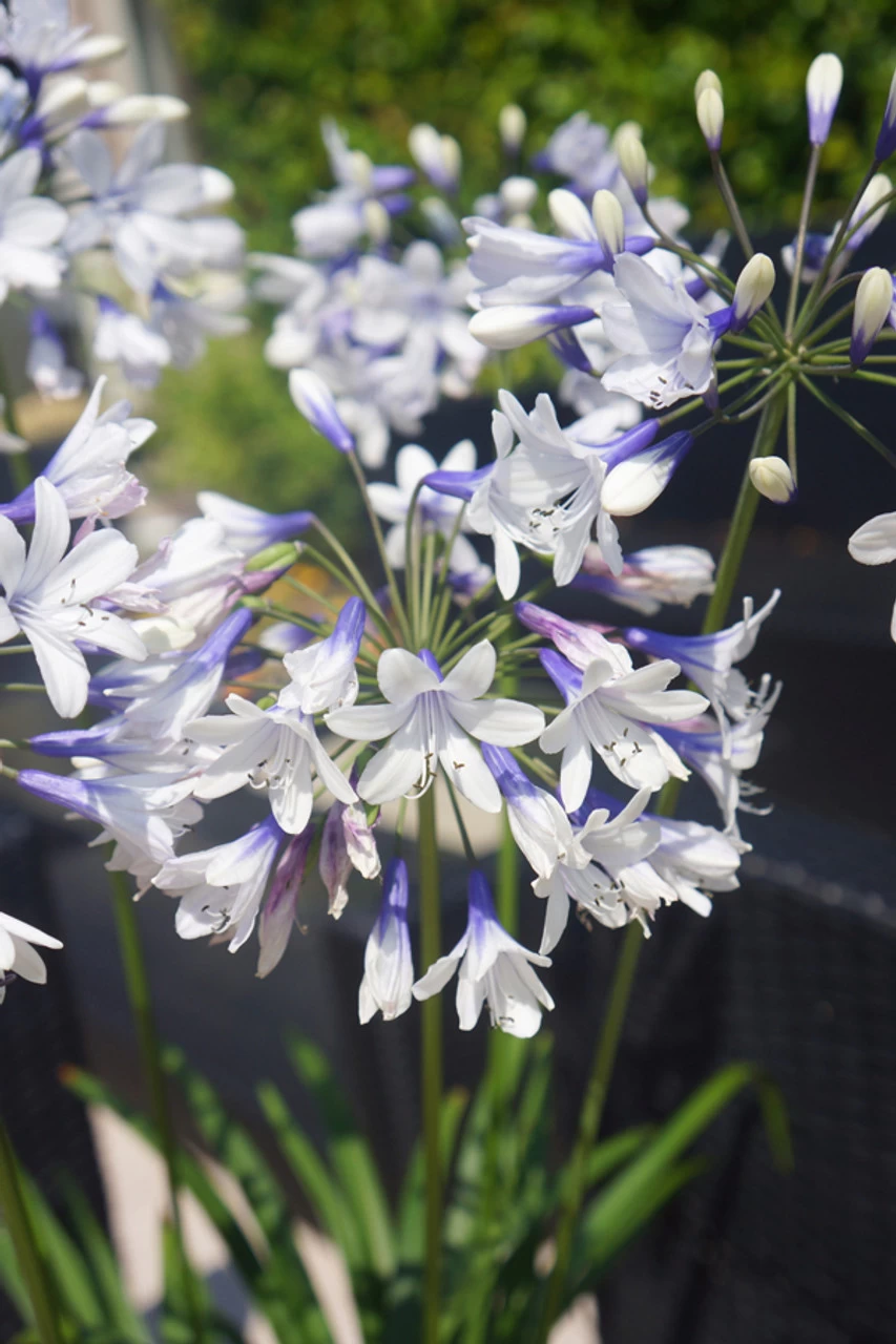 Plant the Indigo Frost Agapanthus in full sun to part shade. Garden soil that is well drained is best. It is tolerant to varying Ph levels and different soil types as long as rich garden soil is mixed in. To fertilize this agapanthus, apply a slow release granular fertilizer in the spring. Water needs are average for Indigo Frost Agapanthus. Mulch your plant to protect it in the winter. Pruning is not necessary, but deadheading encourages reblooms.