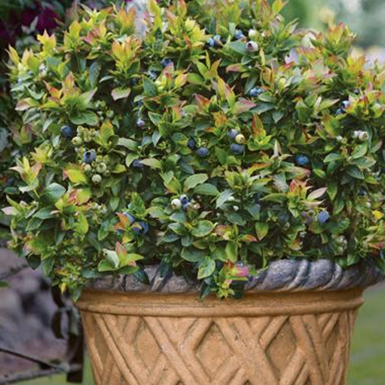This easy-care blueberry bush will produce a crop in the first year. Mature plants will reach 1 to 2 feet tall and wide, making this compact bush an excellent container plant.