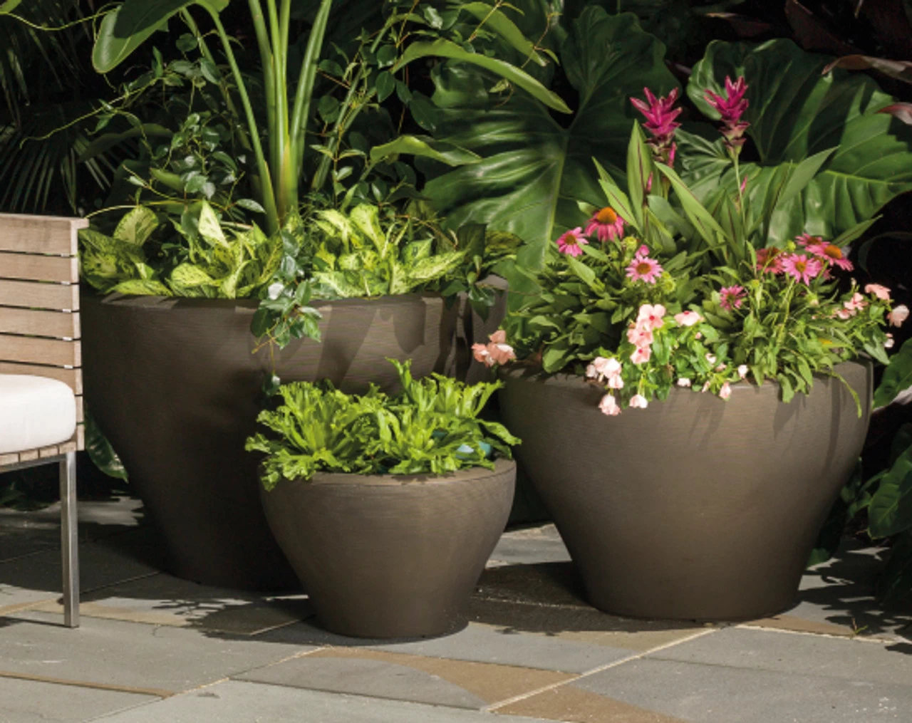 The Juno Planter collection by Crescent Garden has a conservative style for indoor and outdoor use, great for any homeÂ’s style. These planters go great with small ornamental trees or flowering perennials like coneflowers and daylilies. These are made of a weather resistant poly resin material that is fade and crack resistant and also lightweight. These planters also come with pre-drilled holes to save time getting these ready with proper drainage for plants.