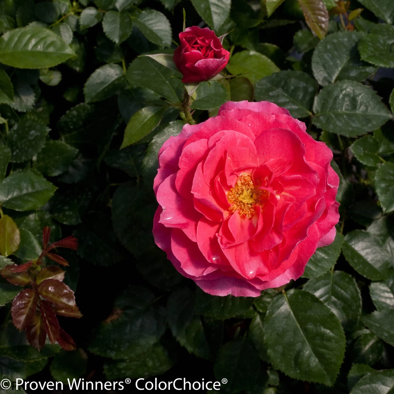 These bright pink blooms are paired with deep green glossy foliage that makes for a gorgeous contrast. New flowers first appear on new wood in the early summer. The bloom season for the Livin’ La Vida® Rose lasts all summer and is continuous. This shrub grows 3 feet wide and 3 feet tall. Its mounded habit makes it a fantastic thriller for container planting. Use it in landscape planting as a focal point or plant for to use its cut blooms for bouquets and arrangements. Foundation planting is another favorite option.
