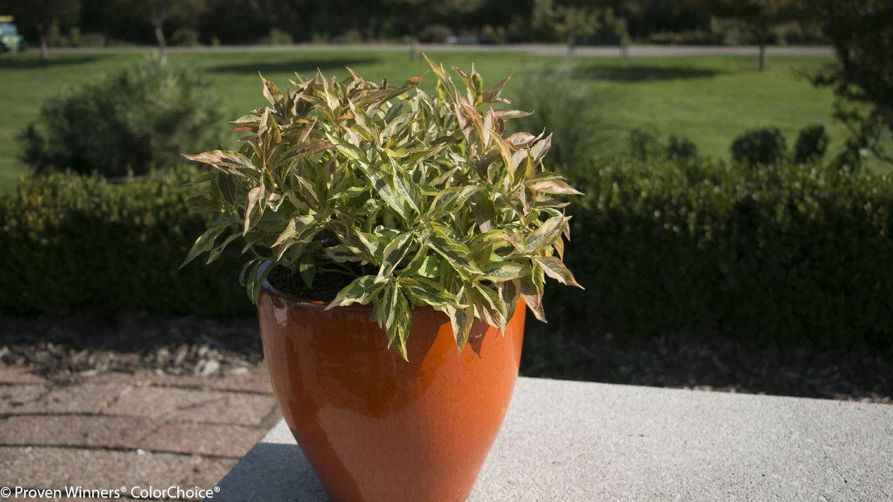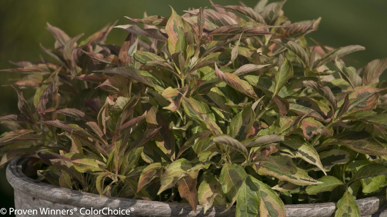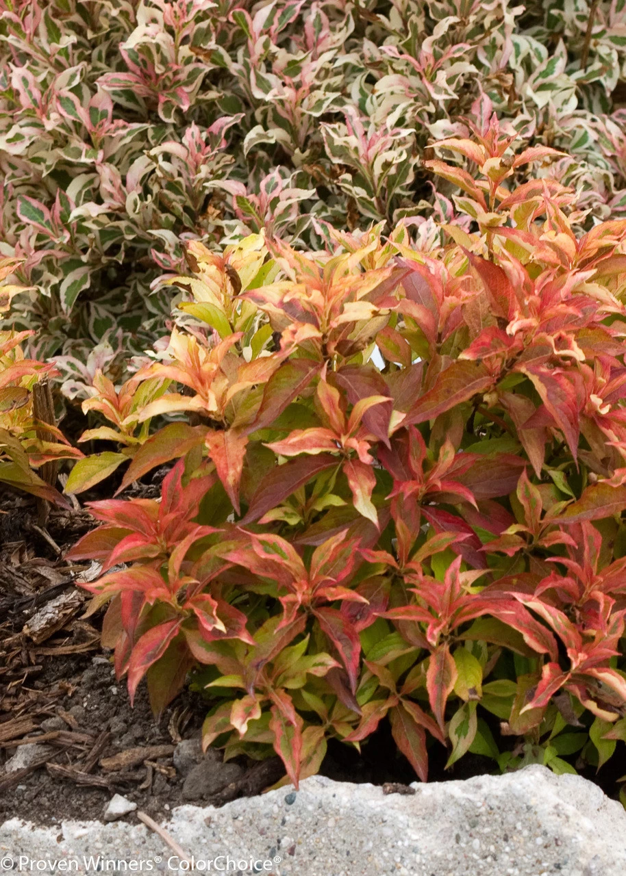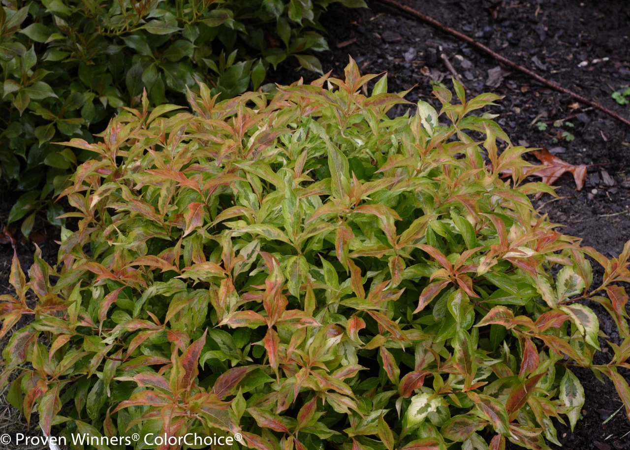 This dwarf weigela is primarily grown for its attractive tricolored green, creamy yellow and bright pink foliage. The wavy leaves on this deciduous shrub turn bright red and gold in the fall. This colorful plant will stand out in your garden. If you’ve never grown a shrub strictly for its foliage, My Monet Sunset will be the one to get you hooked on using leaves to add color and texture to your gardens.