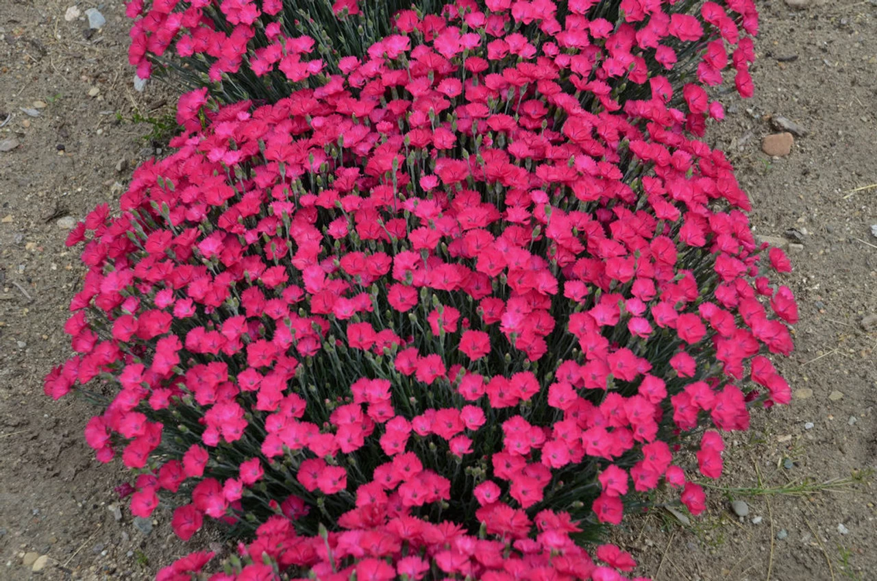 This low maintenance perennial will produce lively bright magenta ¾ to 1-inch wide blossoms that rise above its foliage from late spring to early summer and rebloom in the fall. The jagged-edged blossoms look great against its low mounded blue-green grass-like foliage. During peak bloom time, the flowers will completely cover the plant.