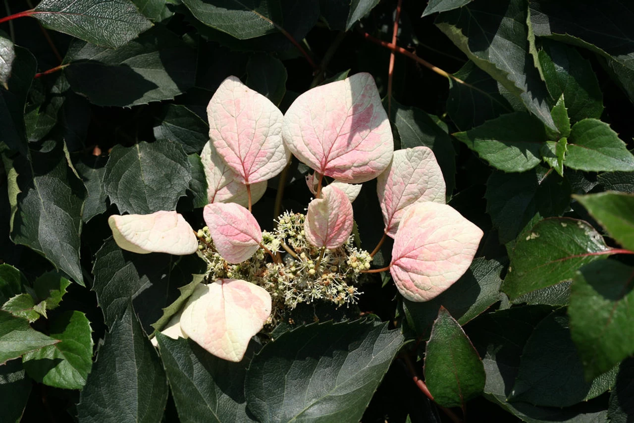 The Rose Sensation False Hydrangea Vine by Proven Winners ColorChoice is not actually a true hydrangea. These are a species native to Asia and the Himalayas regions that have elegant and distinctive large deeper pink sepals in June and July. The flowers are very similar to lacecap hydrangeas. Another name for this plant is Japanese hydrangea vine.