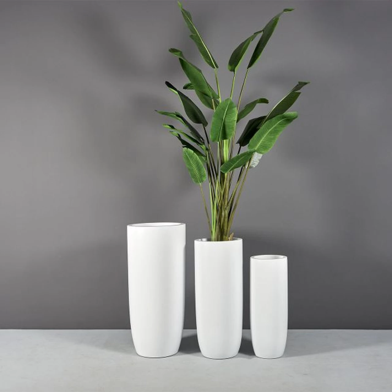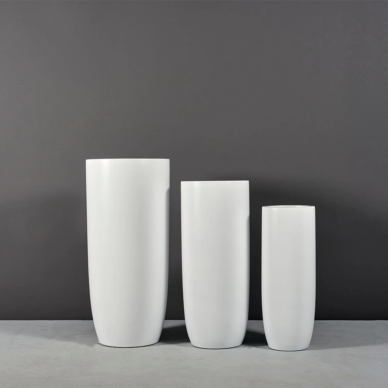 Decorating with these elegant planters is a breeze. Choose from three heights to add impact and drama to entryways, lounges, hallways, or foyers. The sturdy but statuesque shape makes it natural for creating privacy screening with or without plants on the patio, deck, or poolside. The compact bullet shape conserves space and can add the perfect finishing touch to even the smallest garden patio or balcony when used in a grouping of two or more. Use all three sizes together to create an elegant indoor container garden with lush tropical plants.