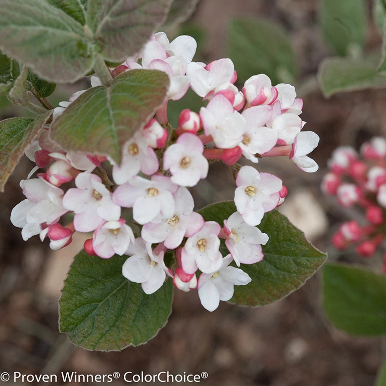 Pruning Spice Girl Viburnum is not necessary unless trimming off broken or crossed branches. This plant blooms on old wood so you risk cutting off the next year’s flower buds if you do prune at the wrong time. She is a big girl growing 6-7ft. tall and wide. For best growth, plant her in a sunny to part sun, moist, well-draining soil and fertilize with a slow release fertilizer for acid loving plants. If berries are desired for wildlife, plant ‘Spice Girl’ with ‘Spice Baby’ and add even more fragrance to the garden! She is hardy from Zone 4a-8b, making it ideal for planting in the most of the country!