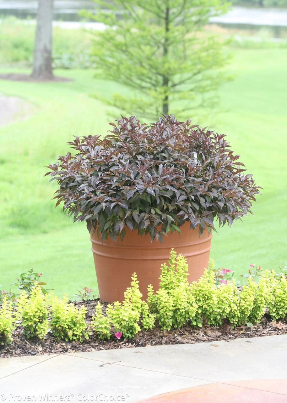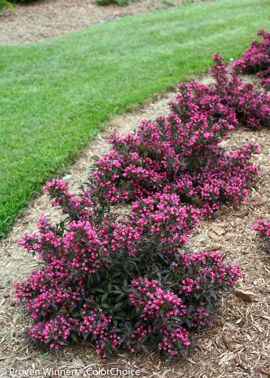 The foliage is the talk of the town. It has gorgeous deep purple foliage that goes perfectly with the bright pink blooms it produces in the spring. This deciduous shrub grows as wide as it is tall reaching a garden height of twenty-four to thirty- six inches and a spread of twenty-four to thirty-six inches. Use your new Weigela in your landscape as a focal point, mixed borders, mass planting or foundation planting.