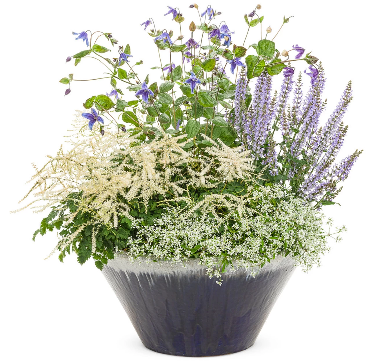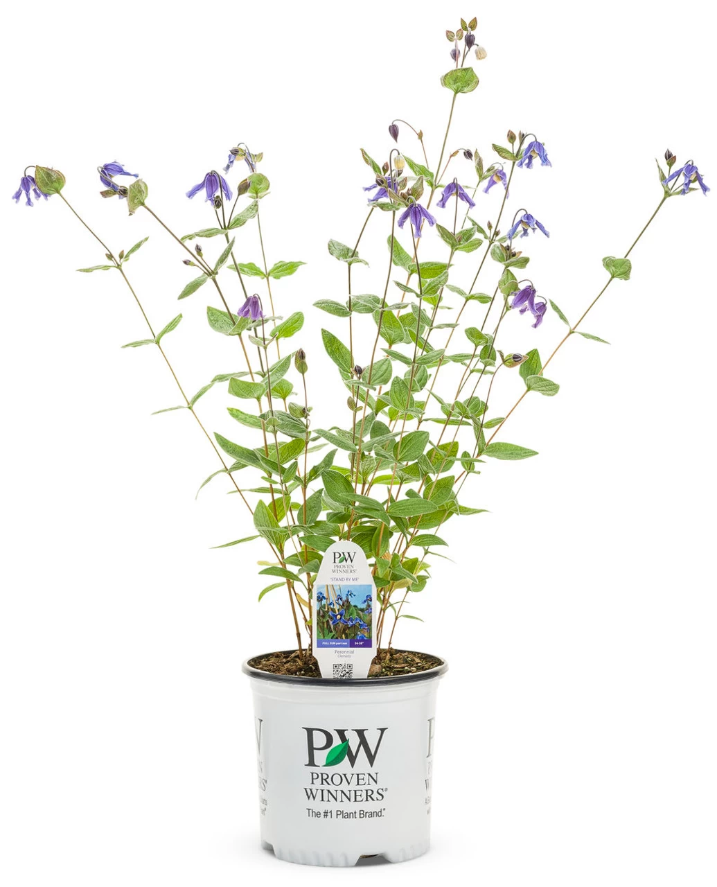 Be sure to plant in full sun, however it will tolerate some light shade. Soil needs to be well drained and slightly alkaline. The Stand by Me Clematis Bush has average water needs but is not picky about soil type. Roots should stay shaded. Apply a layer of mulch around the base of the plant to help keep soil moist. Fertilizer should be applied in the spring. Pruning should be done in the late winter or early spring as this clematis is in the group 3 pruning type. The Stand by Me Clematis Bush is completely herbaceous and non-vining, but it does benefit from staking, neighboring plants or caging for additional support.