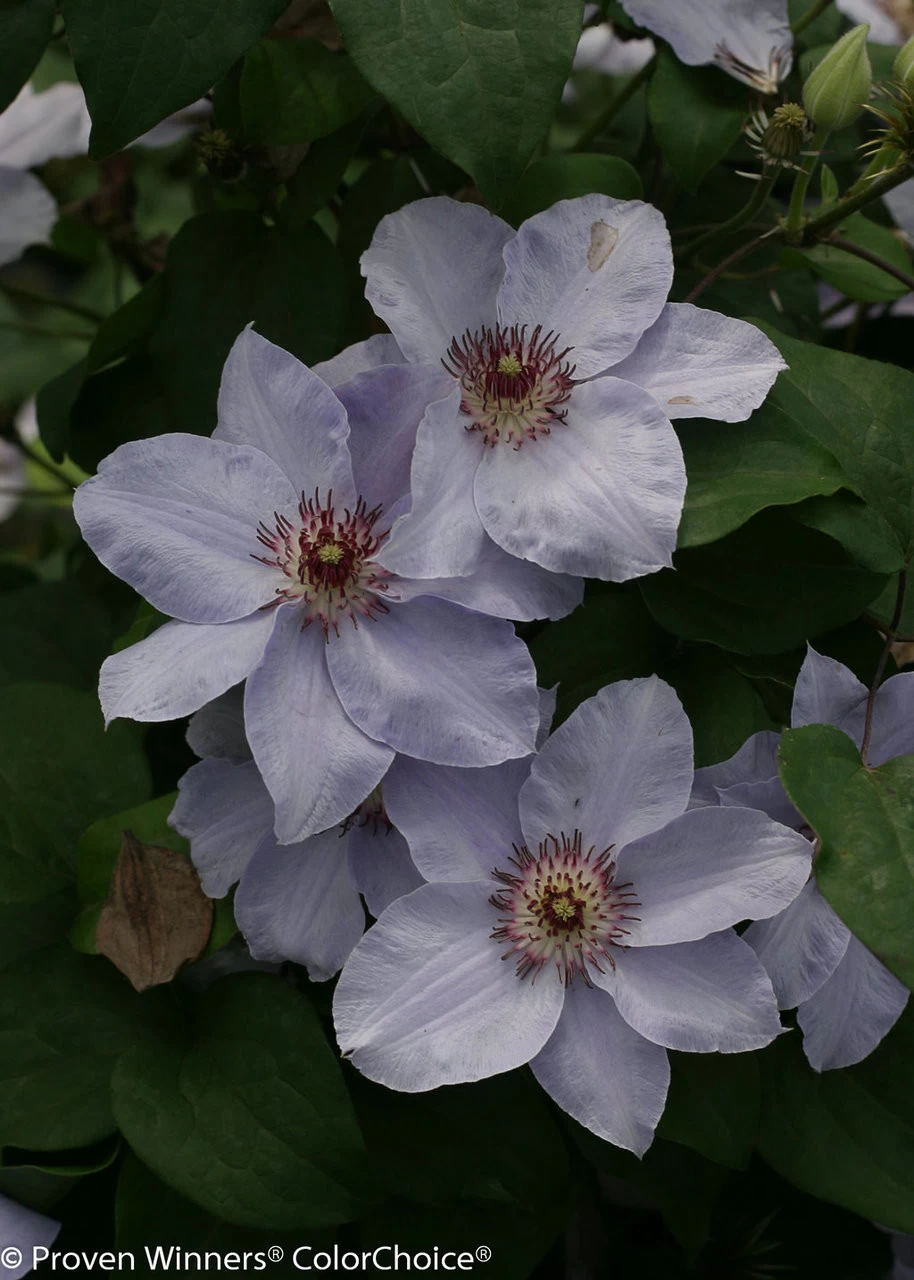 This Clematis has a unique color that provides a beautiful cover. The blooms are large, icy-blue and last for seasons. It makes a beautiful cut flower for your bouquets or grow it on a trellis. The Still Waters Clematis Vine is easy to grow and disease resistant.