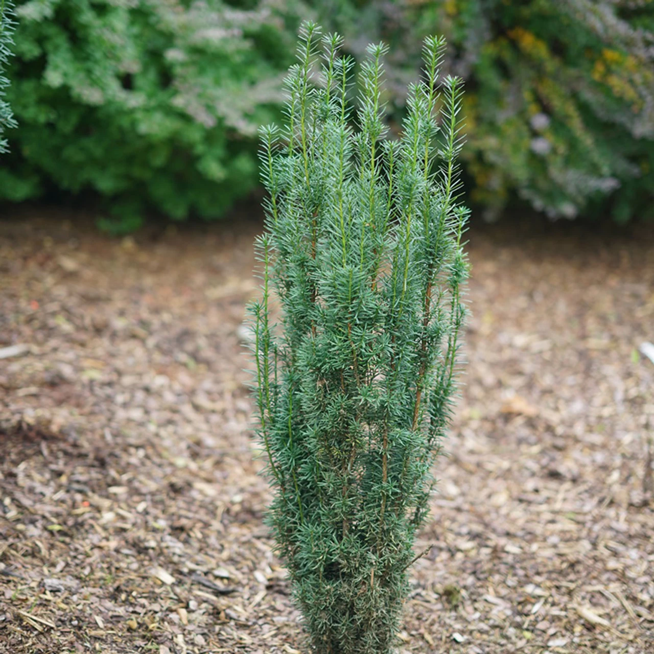 Fill the tiniest of spaces with a tall, lush, green shrub that needs no pruning and provides interest every season. Stonehenge Skinny® Yew Taxus x media is among one of the few evergreens that tolerates heavy shade as well as full sun. Its foliage is a dense, deep green, with bright green new growth in spring. It reaches a height of 72-96 inches with a width of 12-18 inches. Amazingly, its footprint is only one square foot making it a very useful plant for small spaces.