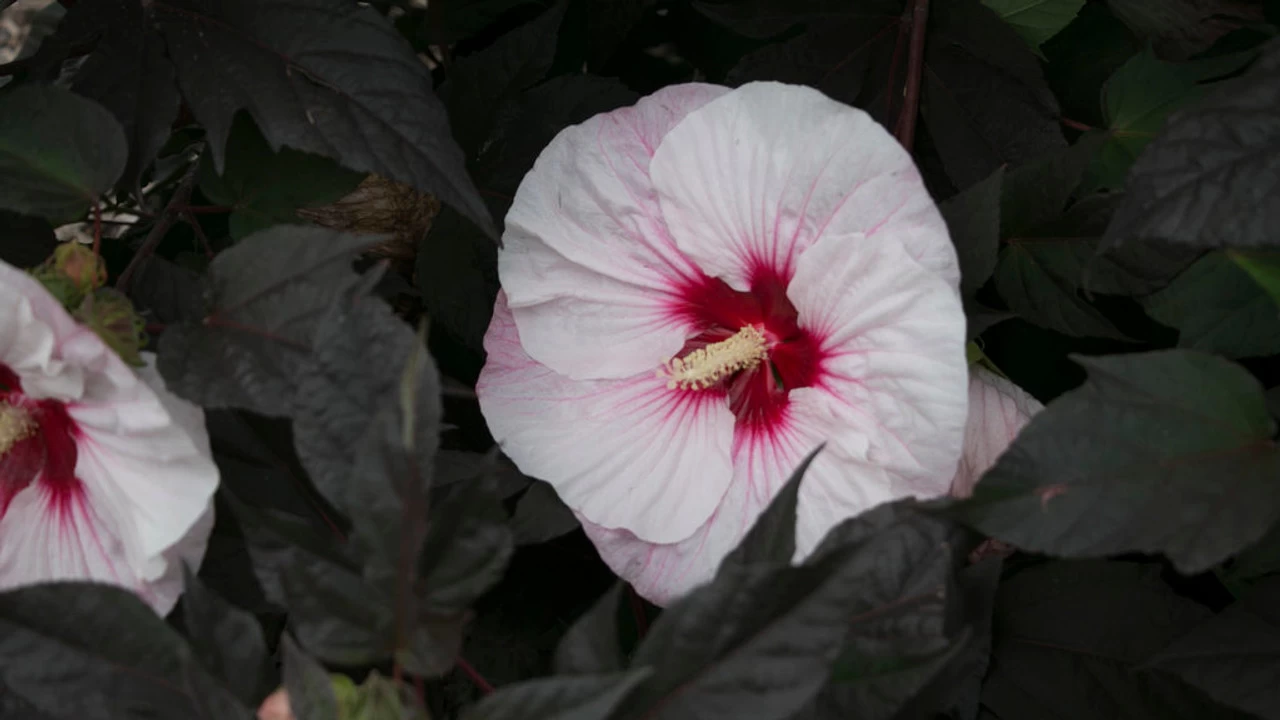 This deep purple black foliage is paired perfectly with its white blooms. The blooms have red centers that make them pop. Bloom season begins in the summer and lasts until fall. The height of this North American Native reaches thirty-six inches. The spread is fifty-four to sixty inches. The Summerific Perfect Storm Hibiscus has a compact habit that is perfect for your large patio containers. Plant as a border plant or for a stunning focal point.