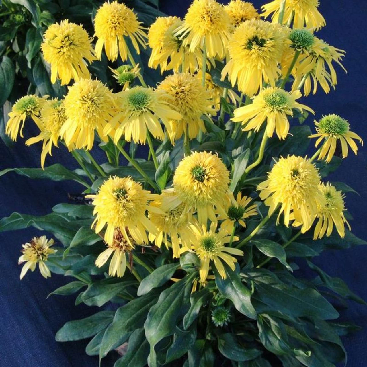 Sunny Days™ Lemon Coneflower (Echinacea Sunny Days™ Lemon) is a perennial grown in USDA hardiness zones 4-9. Its large puffs of lemon-yellow, double flowers are sure to bring a smile to your face. This coneflower grows to a height of 22-30 inches tall and spreads about as wide. Sunny Days™ Lemon Coneflower has a light fragrance and attracts beneficial pollinators like hummingbirds and butterflies.