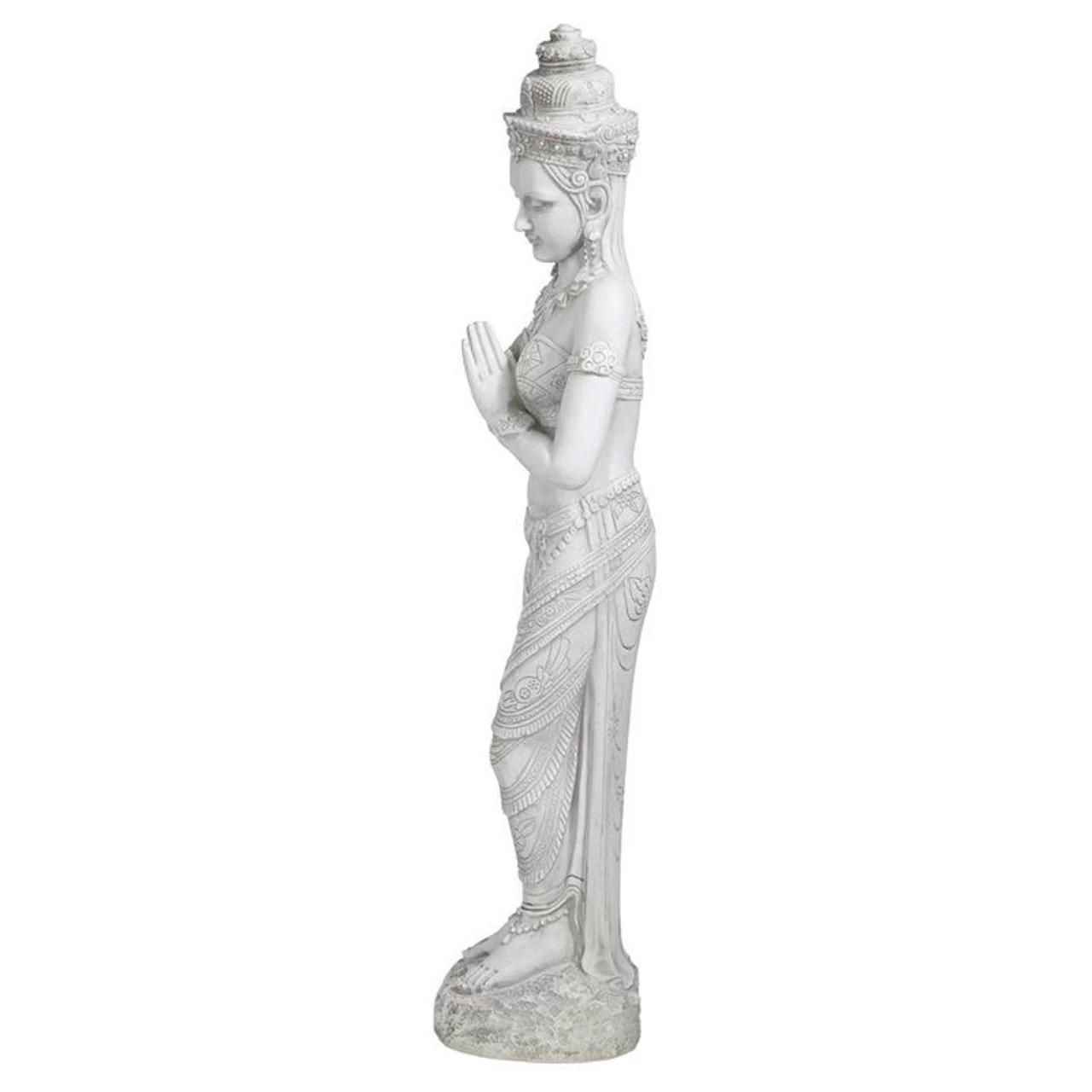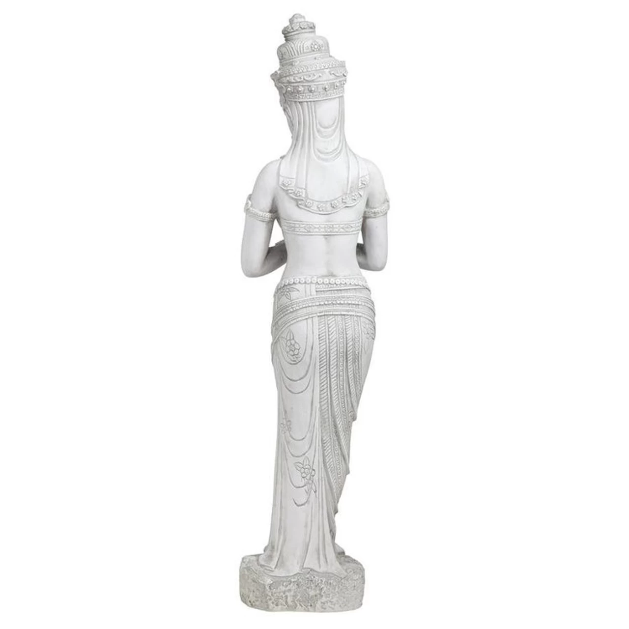 Our collectible Thai maiden statue has been intricately sculpted with wrapped skirt which was traditionally embroidered in gold thread.Classical Asian design creates a tranquil Eastern oasis in your garden. Hand-cast using real crushed stone bonded with high quality designer resin. Each statue is individually hand-painted in a faux stone finish. At home in an indoor gallery or outdoor Zen garden Exclusively created for DT.