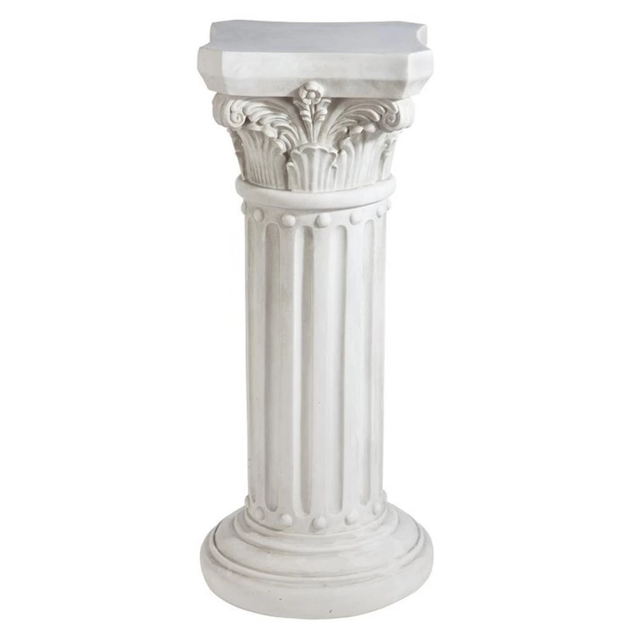 Named for the Greek city of Corinth and its fondness of this ornate art style, this classic is ringed with traditional acanthus leaves. At almost a yard tall, it is the perfect display height indoors for sculpture, vases, or greenery. Cast in quality designer resin in an antique stone finish, itÂ’s also ideal outdoors as a garden focal point in any season.