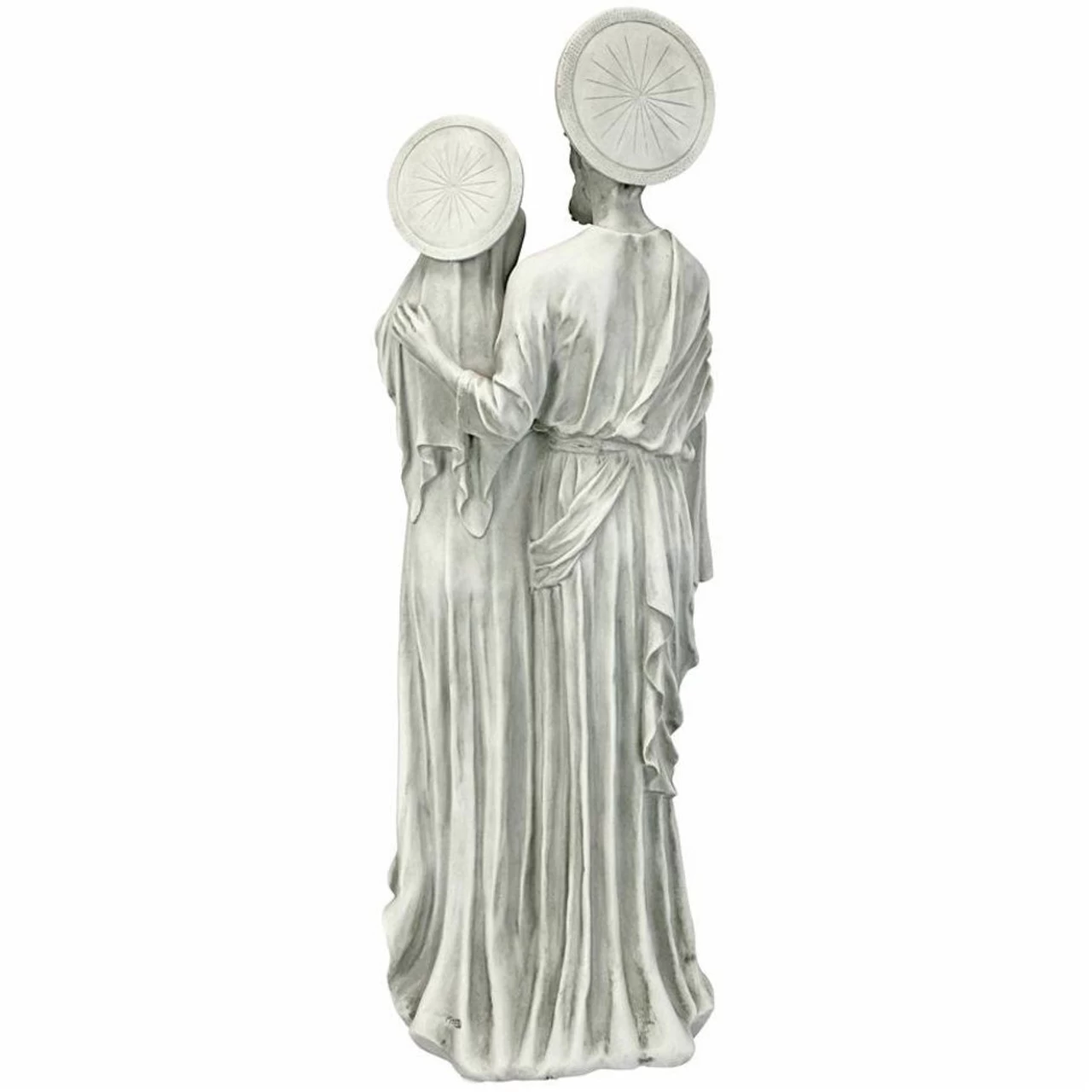 This inventive and touching devotional work combines the elegance, sophistication, and tradition of 15th-century style with an endlessly mystical portrayal of Mary, Joseph, and the Christ Child. Sculpted by contemporary artist Carlo Bronti, who trained in the classic statuary carving arts of Pietrasanta, it is cast in quality designer resin. It is a contemplative piece for your home or garden. Our Large size statue looks wonderful in our Meditation Grotto of Sorrento, KY-72.