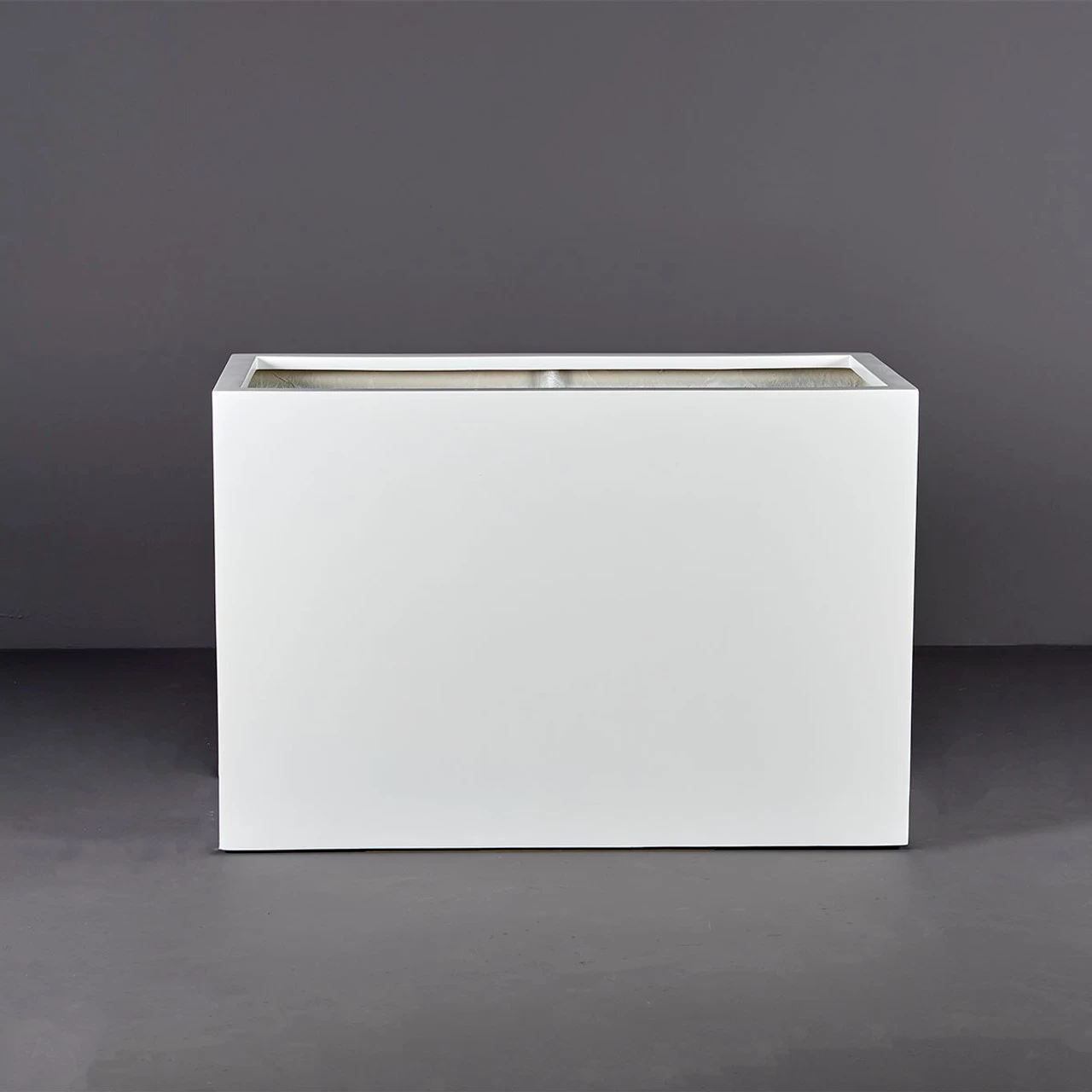 The Tolga Rectangular Planter is the perfect combination of form and function. The wide rectangular shape allows plenty of planting space, while the tall profile makes it useful in many settings where privacy or sectioning off areas may be needed. Jay Scotts offers a basic range of colors and finishes ranging from matte to glossy. Custom colors are an option that lets you select a unique hue that finishes off your one-of-a-kind design.