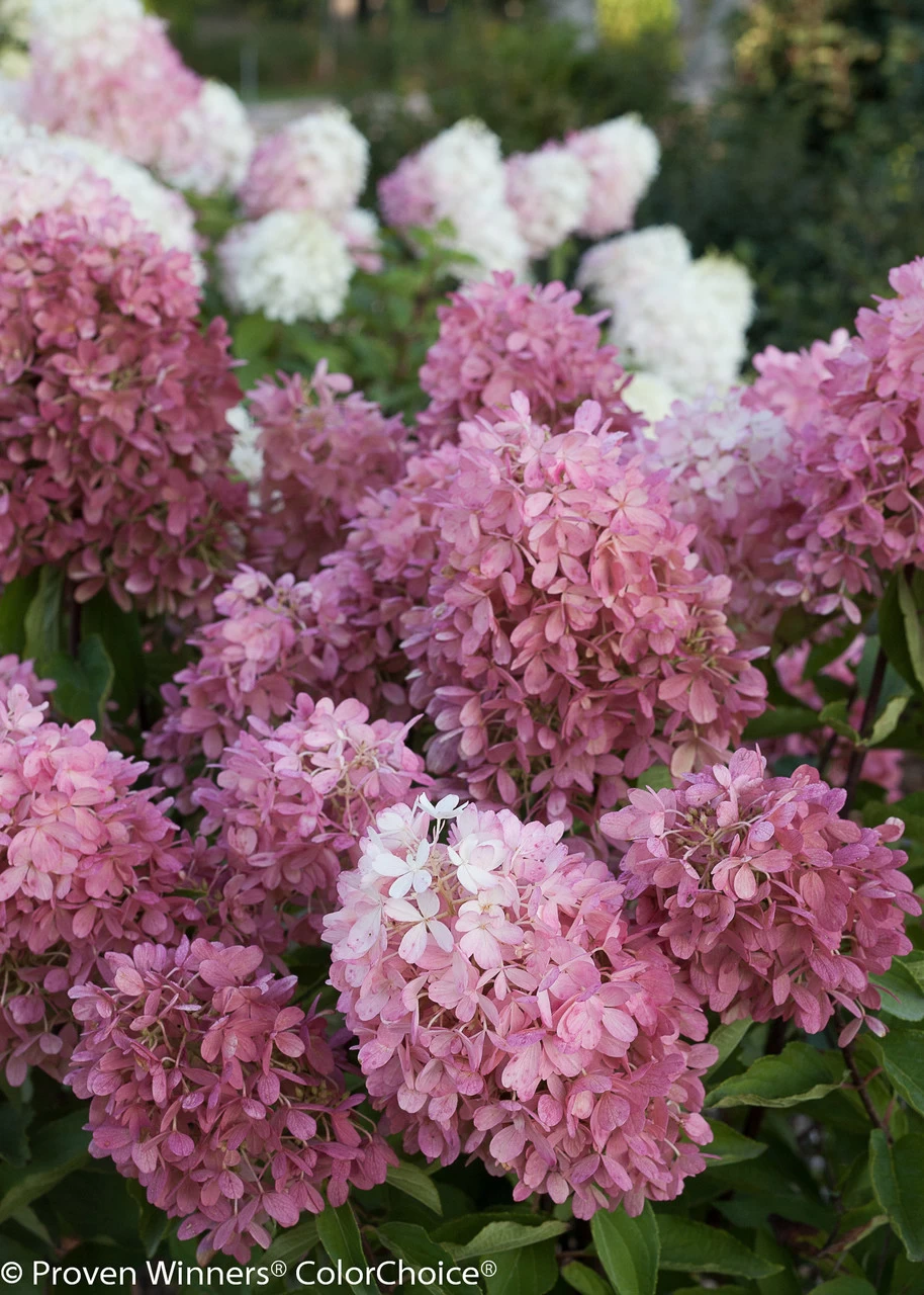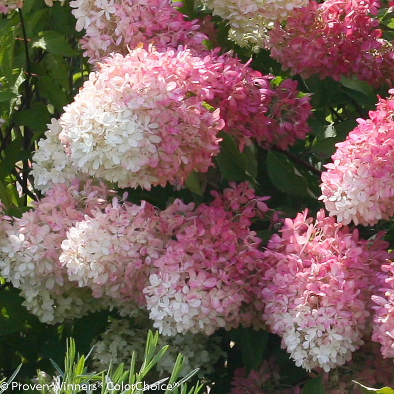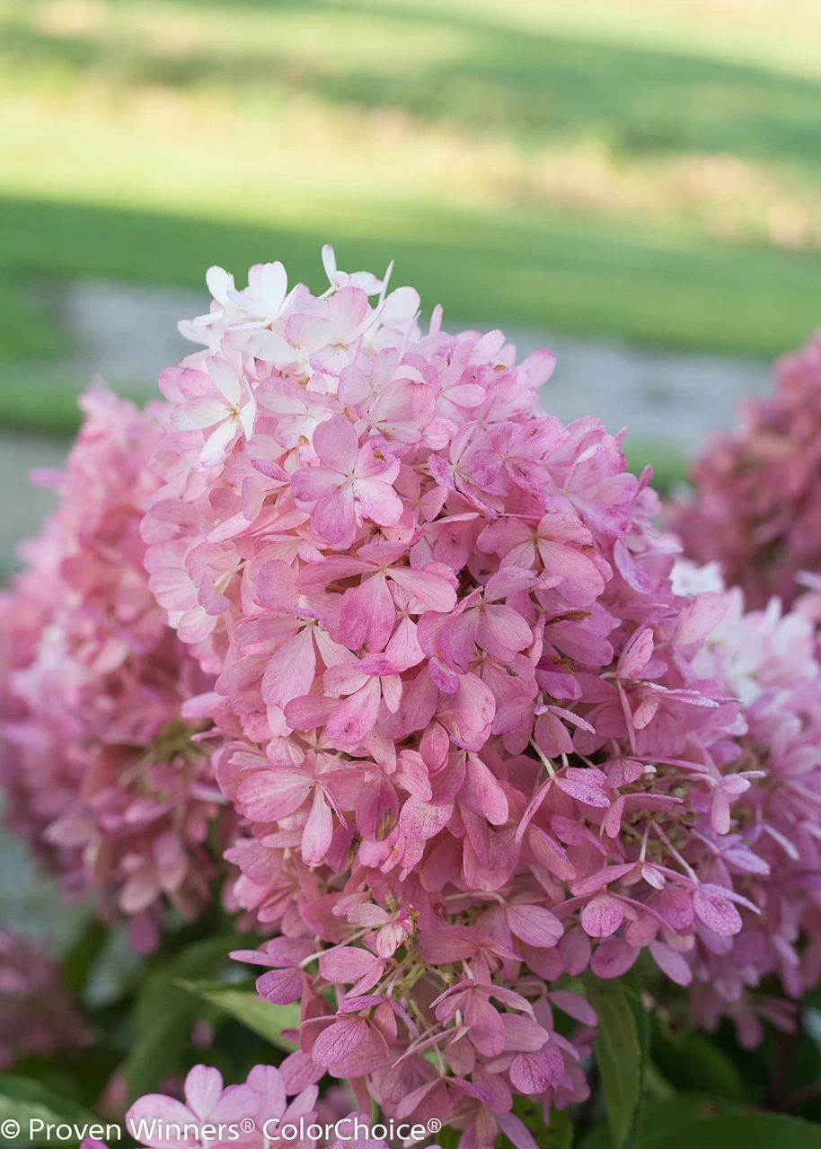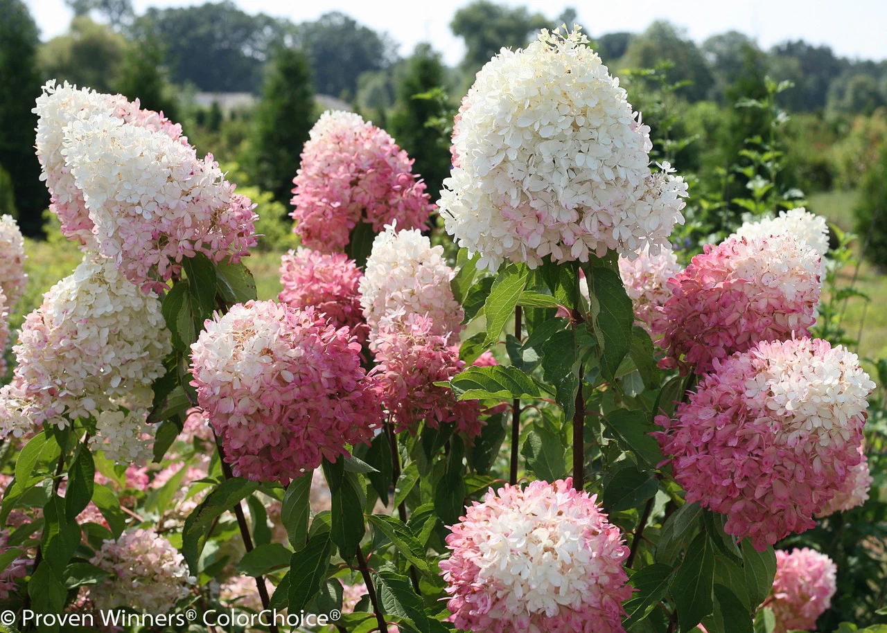 The Zinfin Doll® Hydrangea by Proven Winners ColorChoice® is a large hydrangea with very large two-toned blooms. The enormous panicle flowers start off in early summer as pure white. Then from the bottom up, the blooms start to turn pink for a 2 colored show. As late summer and fall approach, the flowers turn a darker pink. The flowers start to show earlier in the year than a typical hydrangea, and last all the way until late fall!